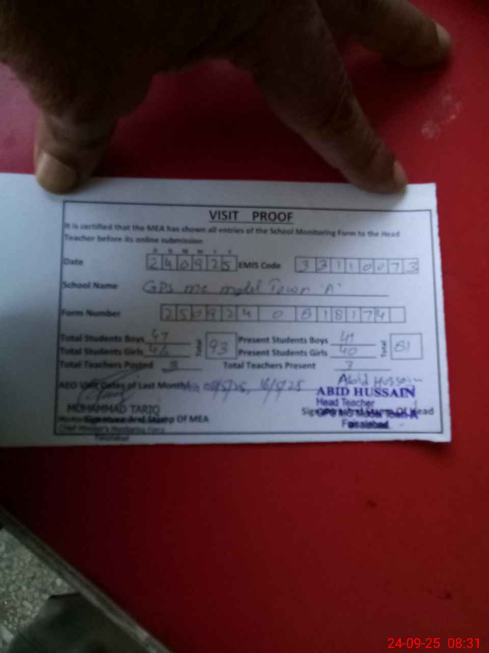 | EMIS Code: 33110073 | Name of School: GPS MC MODEL TOWN A FSD | |||
