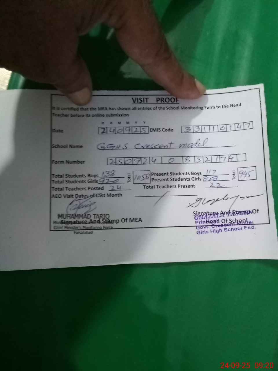 | EMIS Code: 33110147 | Name of School: GGHS CRESCENT MODEL BOLE KE JOGI | |||