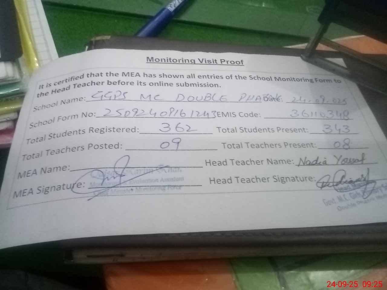 | EMIS Code: 36110348 | Name of School: GGPS MC DOUBLE PHATAK MULTAN | |||