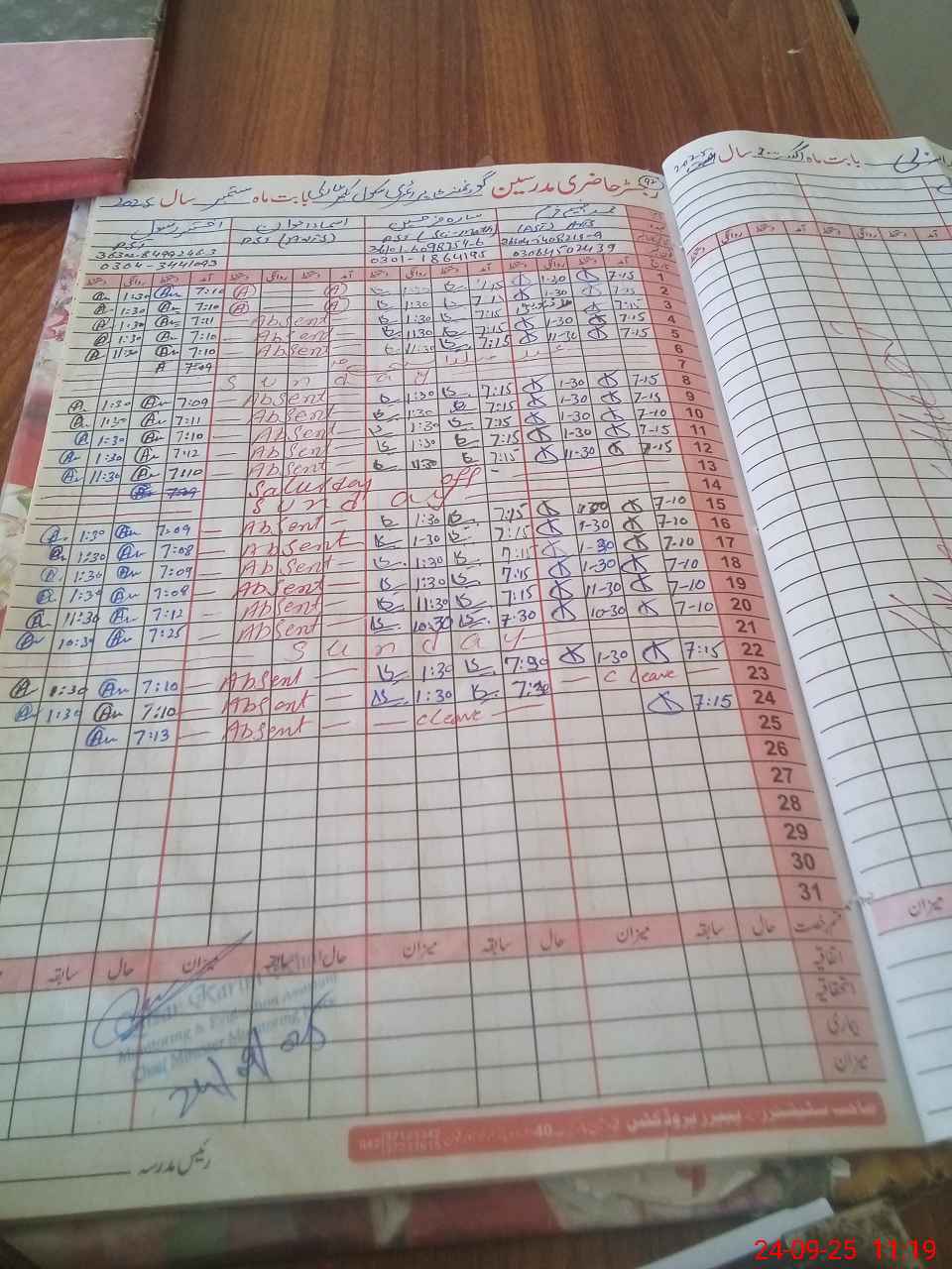 | CNIC | Full Name | Designation | R/C | Absence during last cal. month |