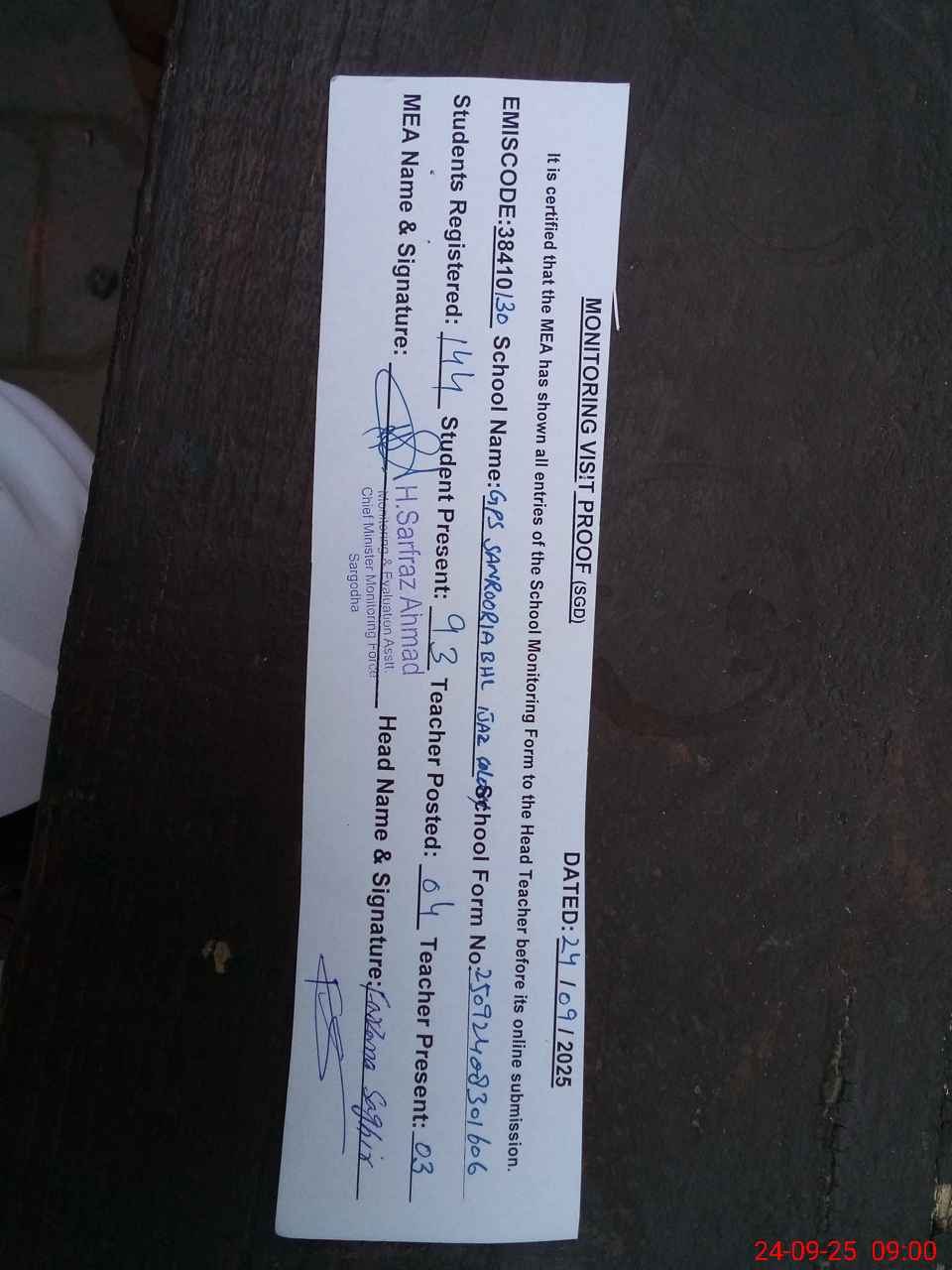 | EMIS Code: 38410130 | Name of School: GPS SANROORIA BHALWAL IJAZ COLONY | |||