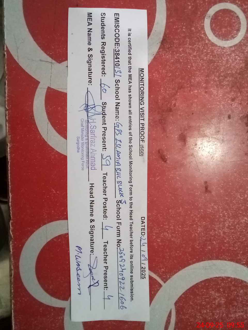 | EMIS Code: 38410131 | Name of School: GPS ISLAMIA BHALWAL BLOCK NO 3 | |||