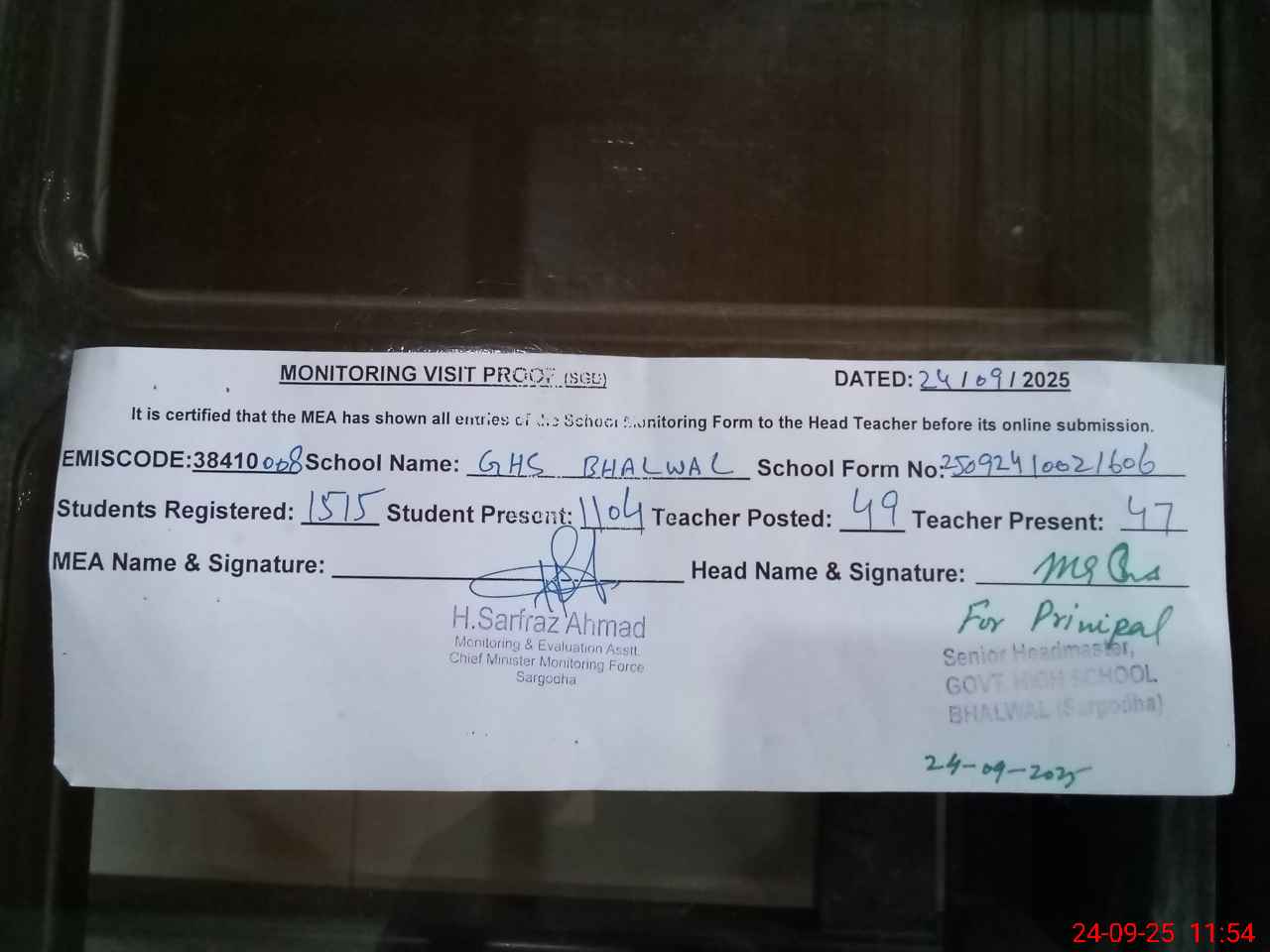 | EMIS Code: 38410008 | Name of School: GHS BHALWAL | |||