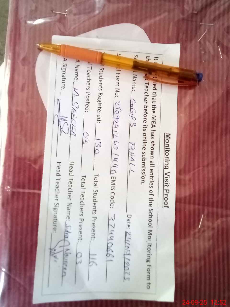| EMIS Code: 37440661 | Name of School: GGPS BHALL P/O BHALL CHAKWAL | |||