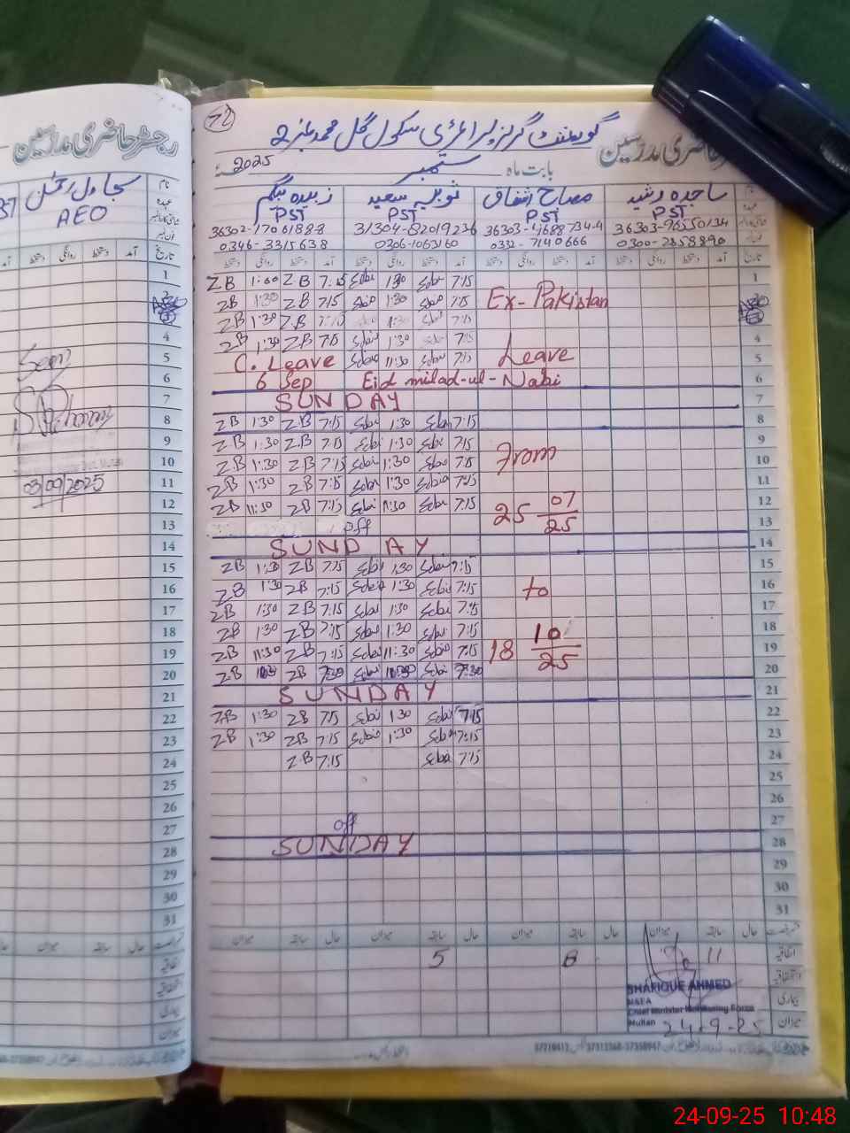 | Leave | Duty | Absent | Maternity | Medical | Ex- Pak |