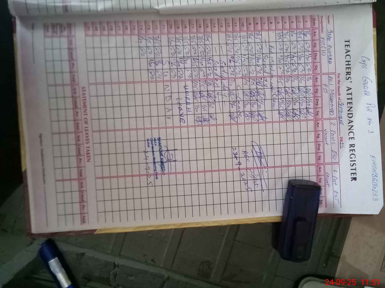 | Name: Ij**** Ah**** Designation: (School Headmaster's/Headmistress's) PST Phone/Cell Number: 03**** |