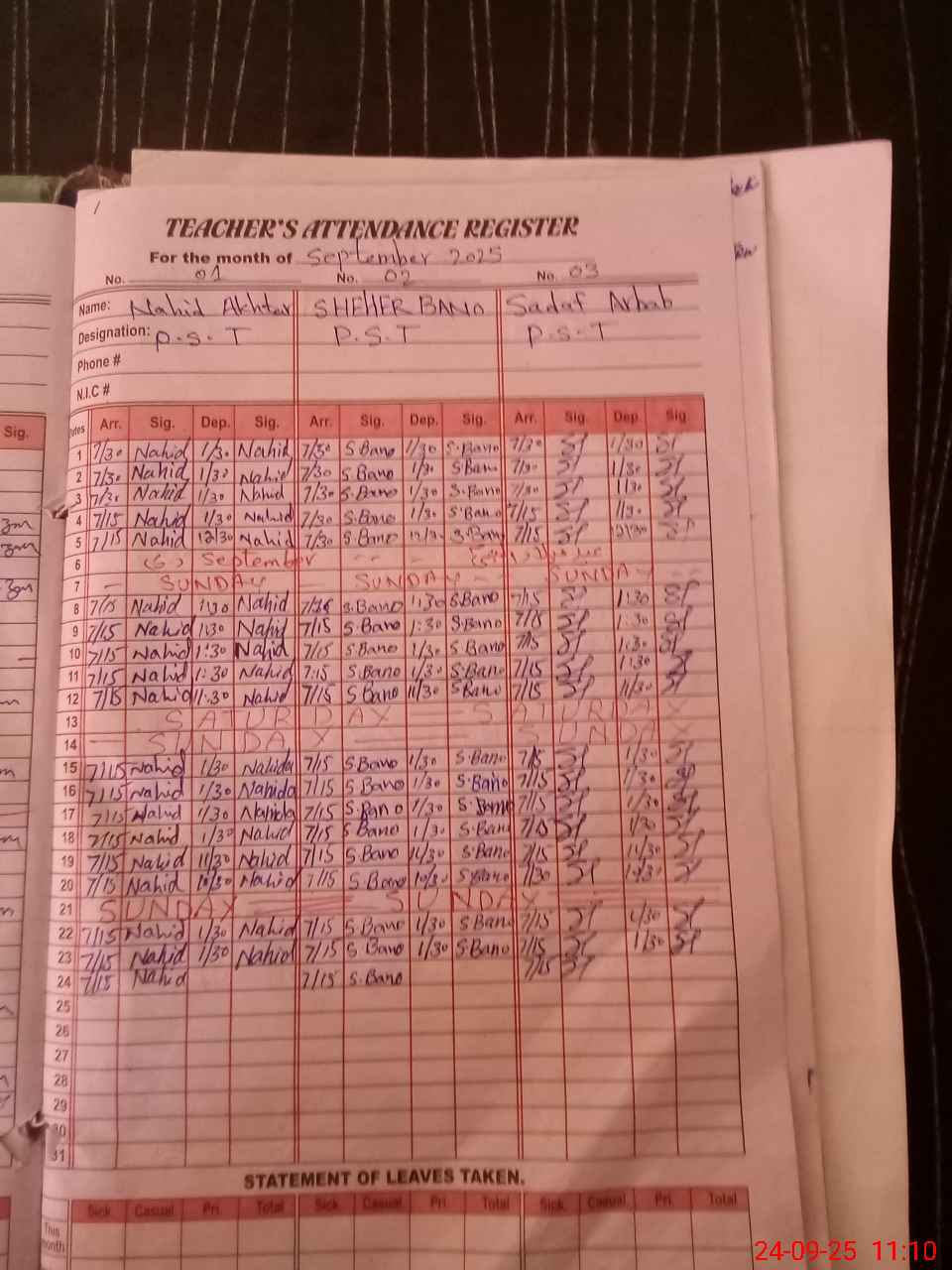 | Name: NA**** AK**** Designation: (School Headmaster's/Headmistress's) PST Phone/Cell Number: 03**** |