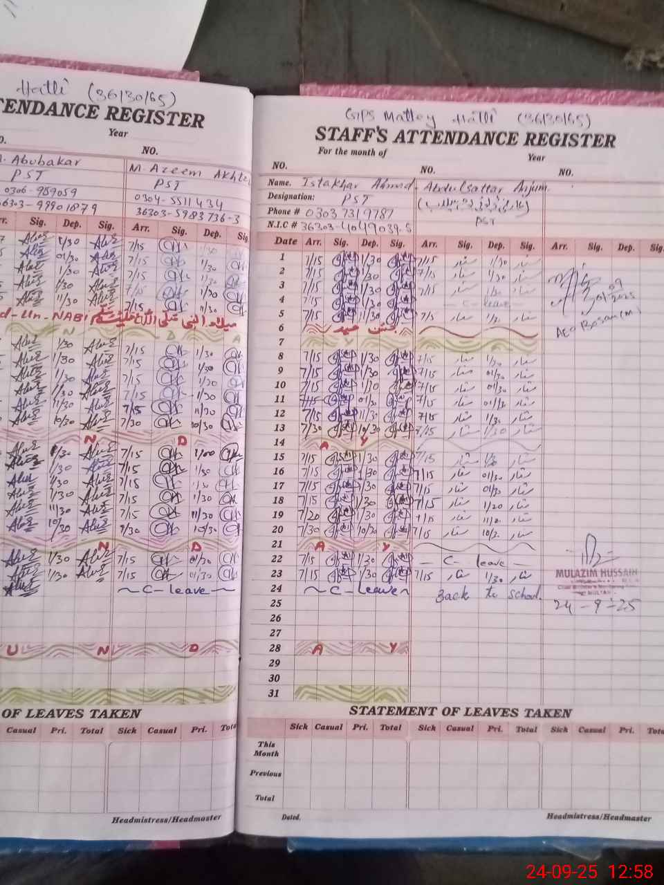 | Name: Mu**** Az**** Designation: (School Headmaster's/Headmistress's) Ese Sci Math Phone/Cell Number: 03**** |