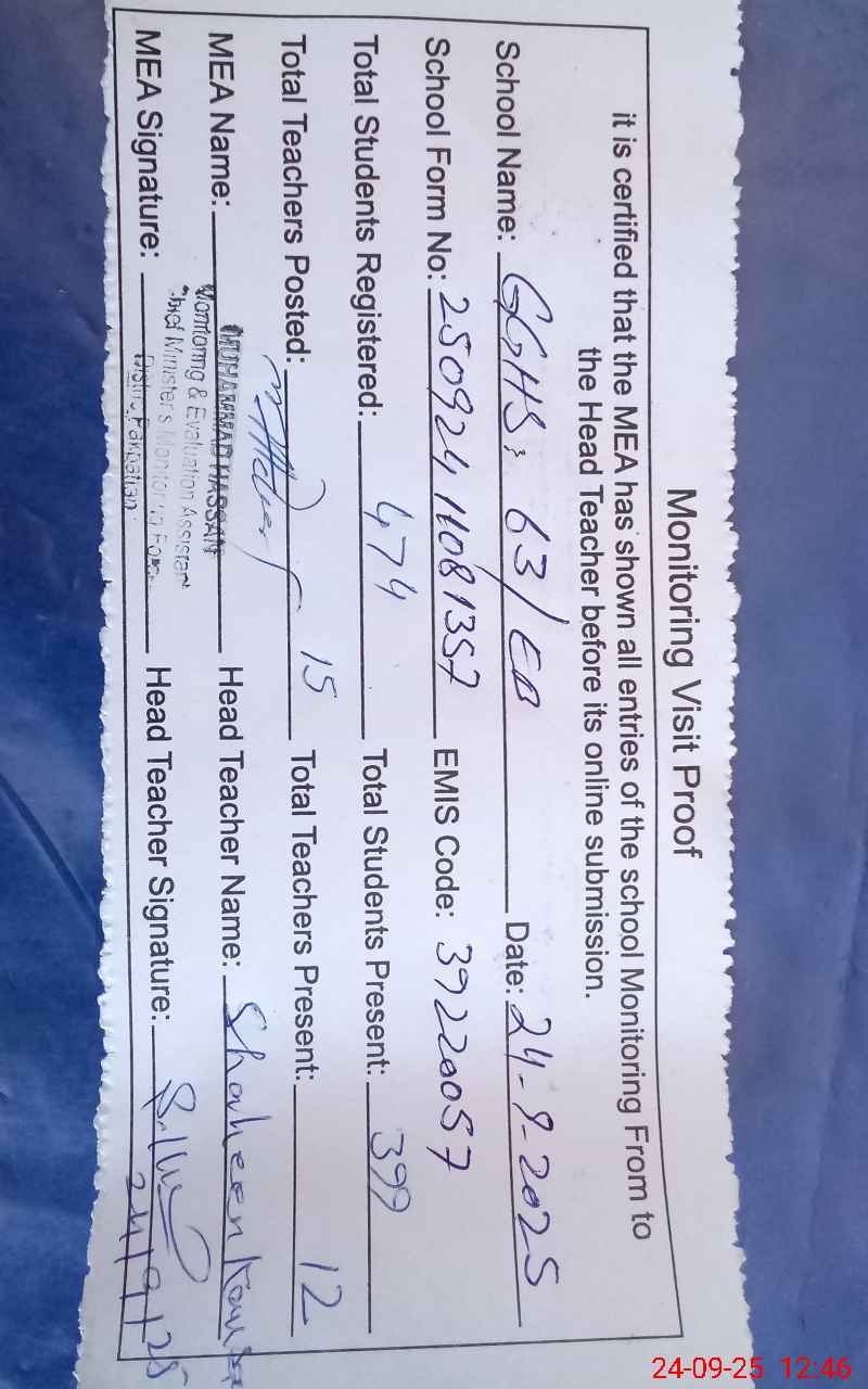 | EMIS Code: 39220057 | Name of School: GGHS 63 EB | |||