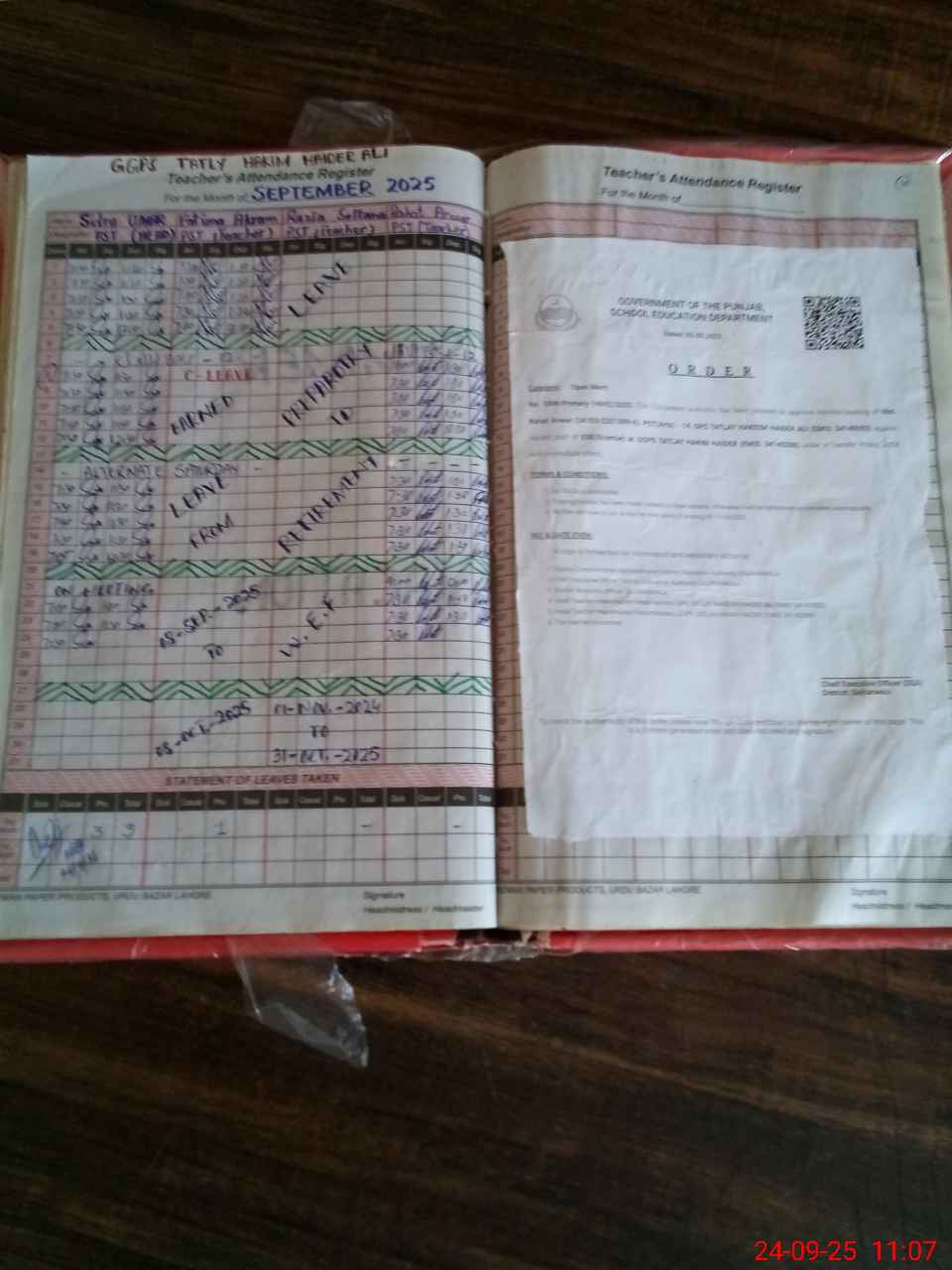 | CNIC | Full Name | Designation | R/C | Absence During Last Calender Month |