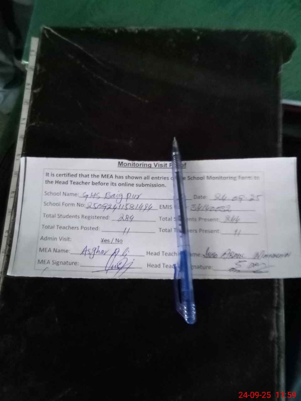 | EMIS Code: 34140032 | Name of School: GHS BAIG PUR | |||