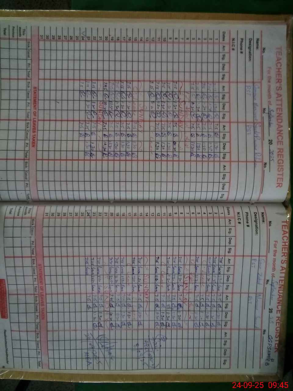 | Name: SA**** MA**** Designation: (School Headmaster's/Headmistress's) PST Phone/Cell Number: 03**** |