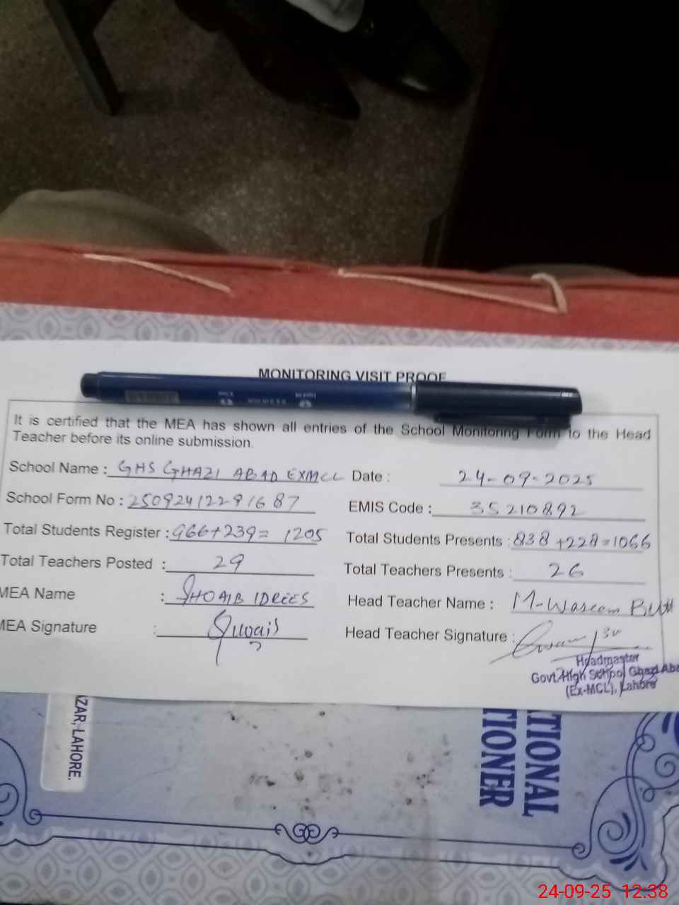 | Monitoring Date: 24-09-2025 | Start Time: 24-09-2025 11:59 AM | End Time: 24-09-2025 12:46 PM | Name of MEA: SH**** ID**** | |