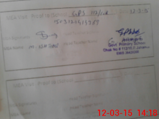 | Attendance Register | Head Teacher | MEA with School | Visit Proof |