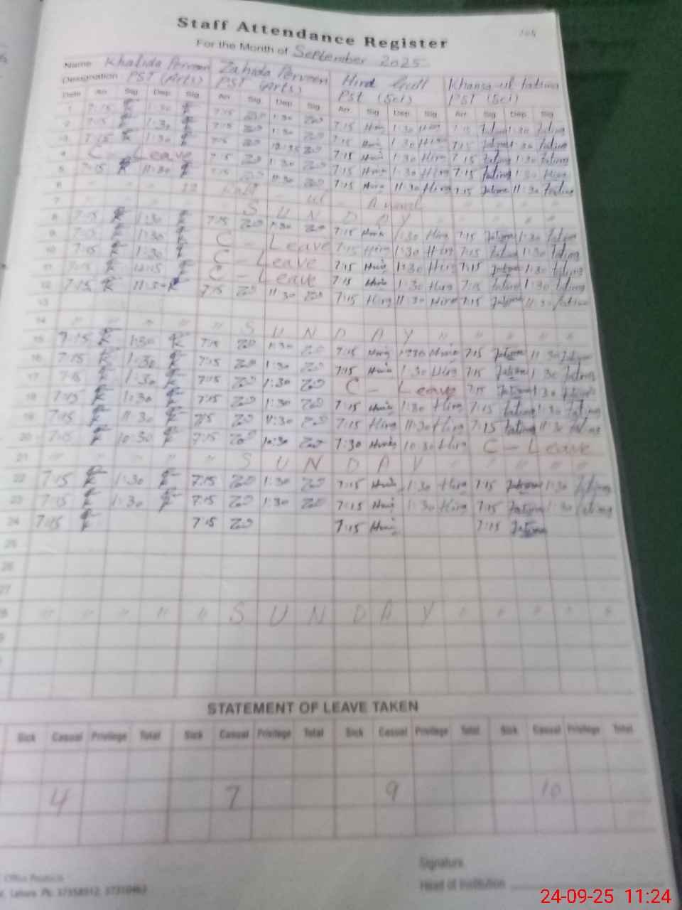 | Name: Zu**** Sh**** Designation: (School Headmaster's/Headmistress's) PST Phone/Cell Number: 03**** |