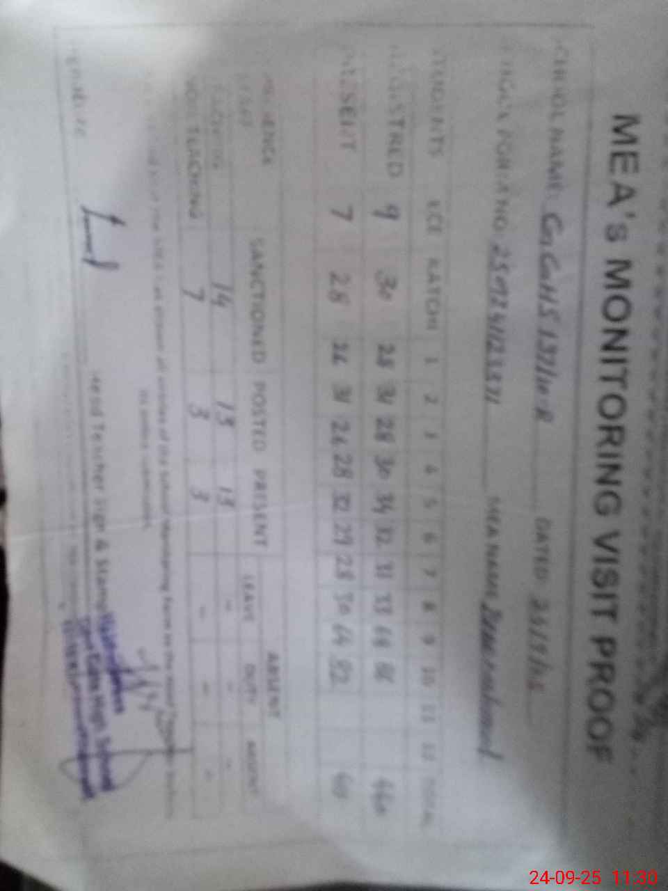 | Attendance Register | Head Teacher | MEA with School | Visit Proof |