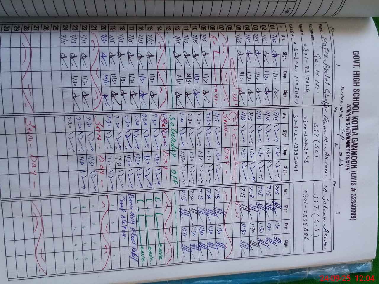 | Name: Mu**** Ak**** Designation: (School Headmaster's/Headmistress's) SST Phone/Cell Number: 03**** |