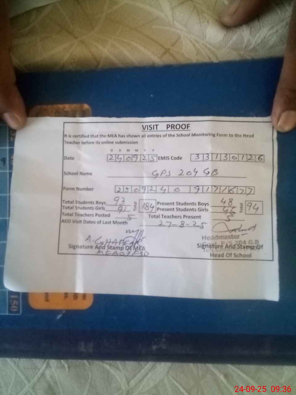 | EMIS Code: 33130126 | Name of School: GPS 204 GB | |||