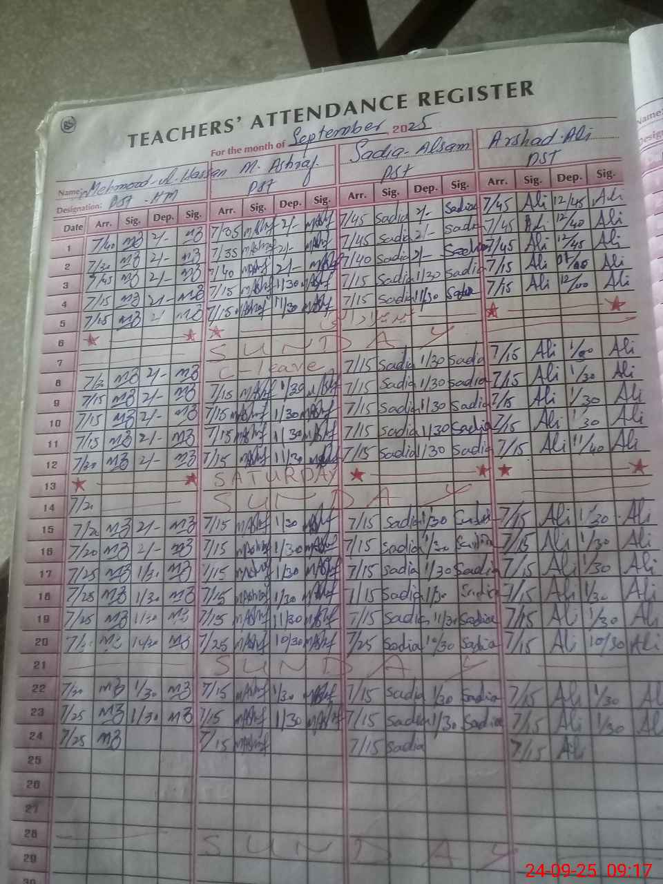 | CNIC | Full Name | Designation | R/C | Absence during last cal. month |