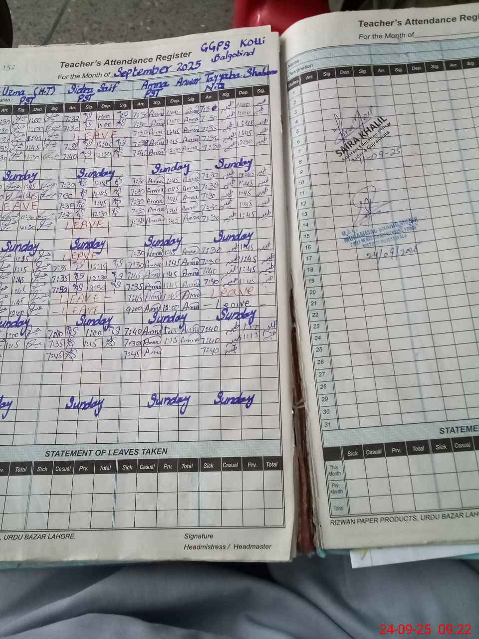 | District: GUJRANWALA | Tehsil: GUJRANWALA SADAR | Markaz: GUJRANWALA SADAR 4 - FEMALE | Level: Primary | |
