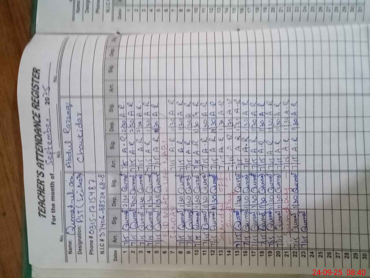 | Name: Mu**** An**** Designation: (School Headmaster's/Headmistress's) SST (GEN) Phone/Cell Number: 03**** |