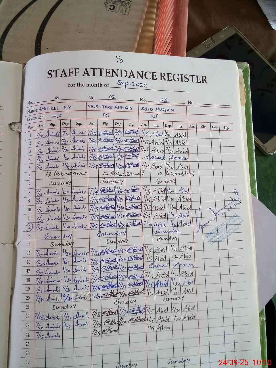 | Name: AM**** AL**** Designation: (School Headmaster's/Headmistress's) PST Phone/Cell Number: 03**** |