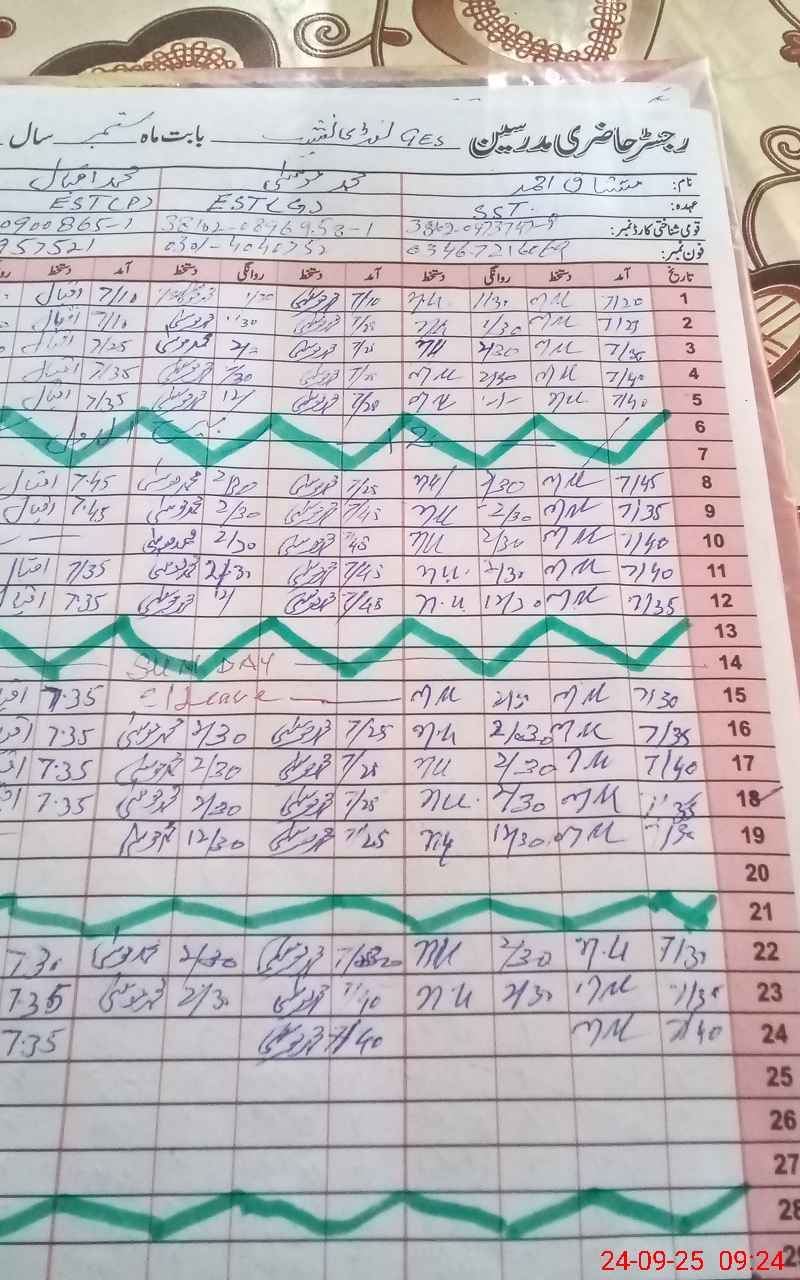| CNIC | Full Name | Designation | R/C | Absence During Last Calender Month |