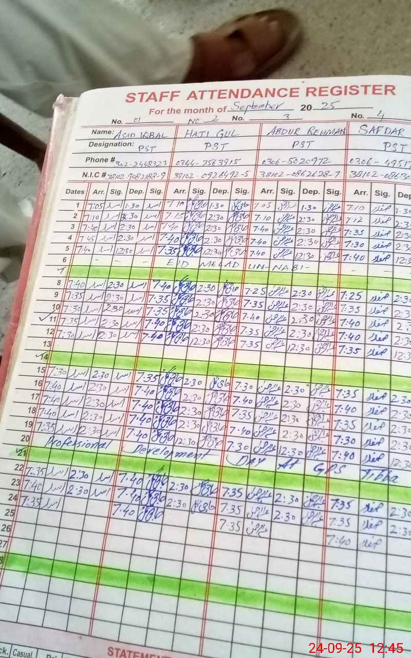 | Name: AS**** IQ**** Designation: (School Headmaster's/Headmistress's) PST Phone/Cell Number: 03**** |