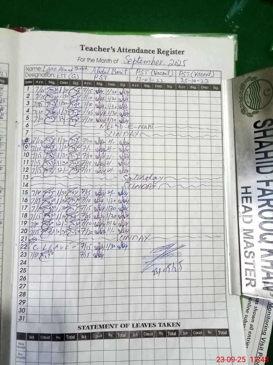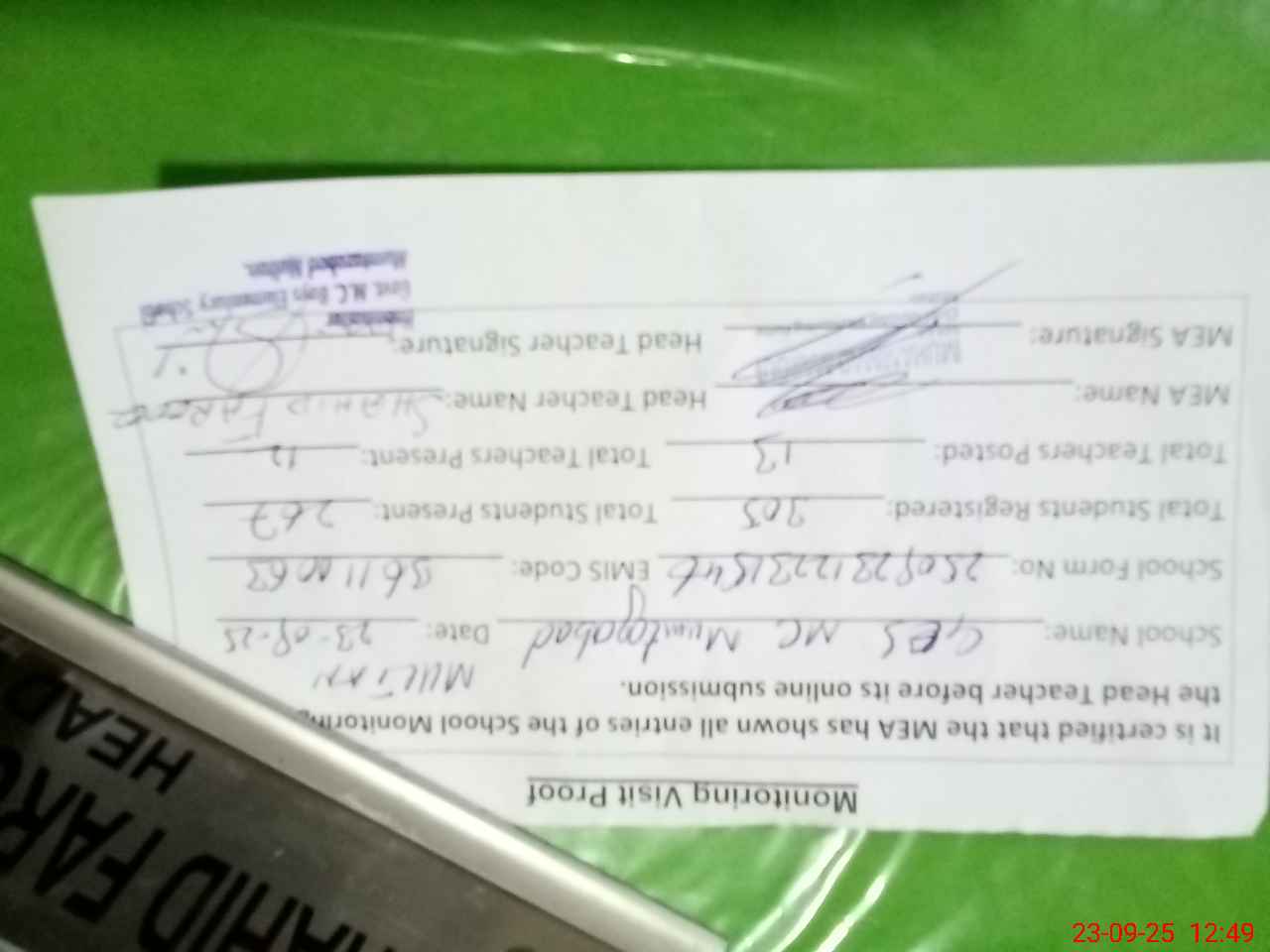 | Name: M.**** FA**** Designation: (School Headmaster's/Headmistress's) HEADMASTER Phone/Cell Number: 03**** |