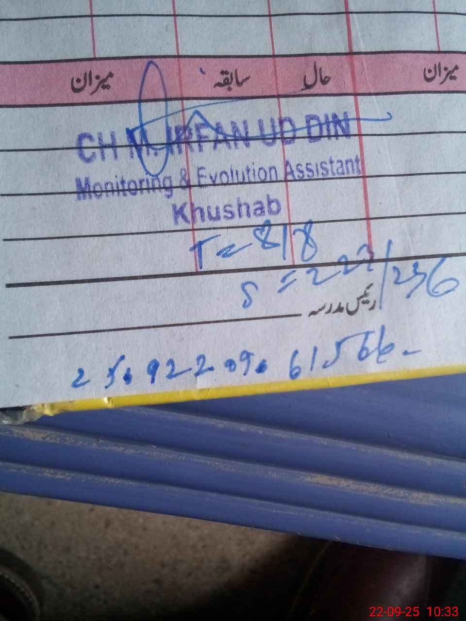 | Name: Kh**** Ba**** Designation: (School Headmaster's/Headmistress's) SSE Phone/Cell Number: 03**** |