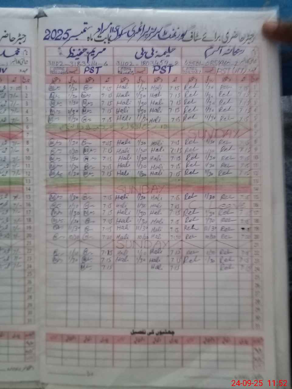 | CNIC | Full Name | Designation | R/C | Absence During Last Calender Month |