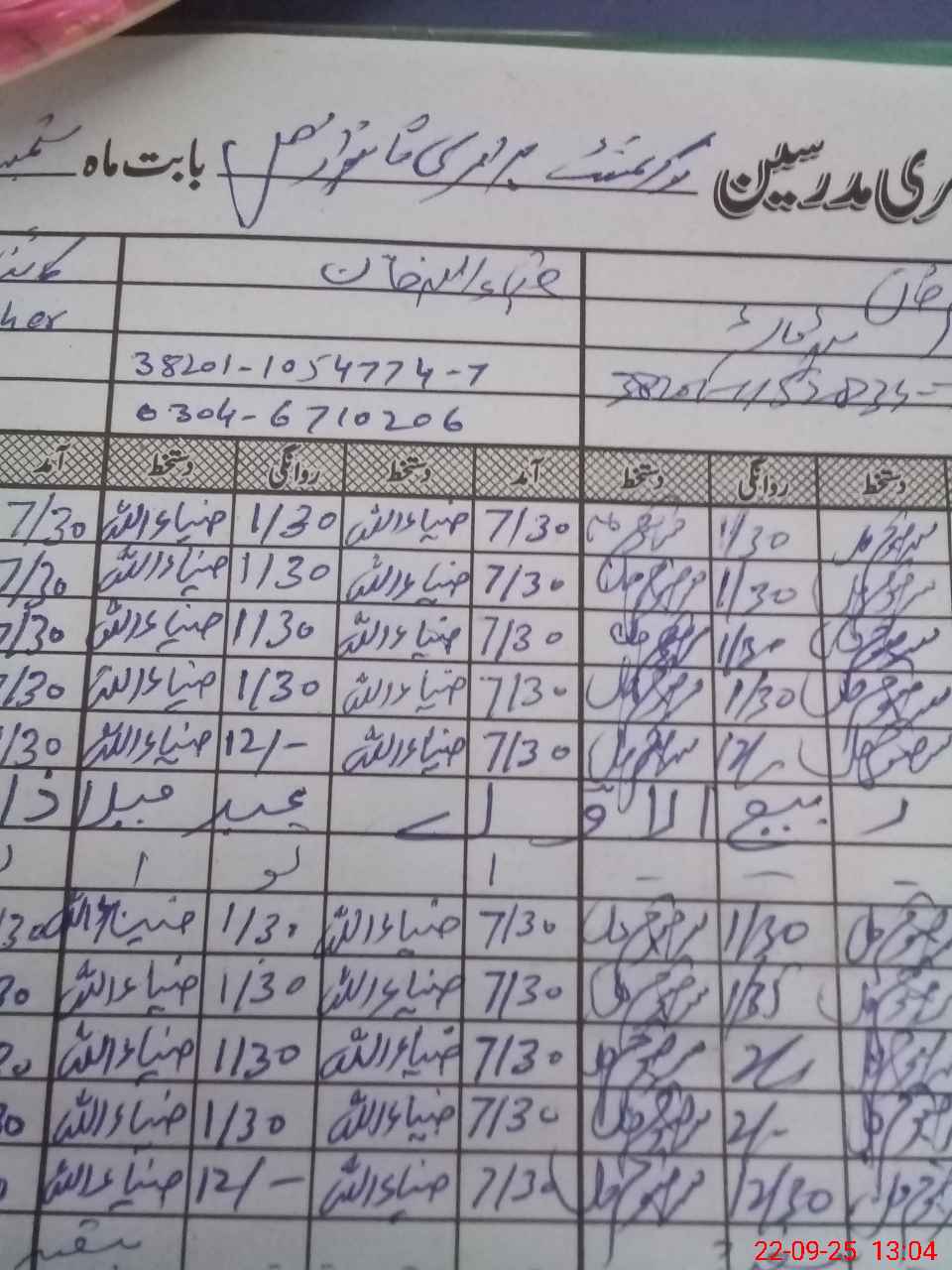 | Name: Mu**** Qa**** Designation: (School Headmaster's/Headmistress's) PST Phone/Cell Number: 03**** |