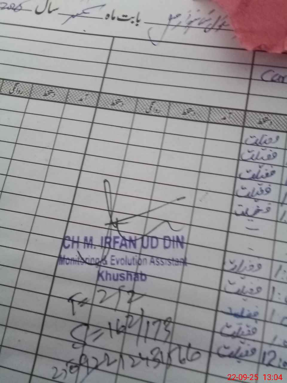 | CNIC | Full Name | Designation | R/C | Absence during last cal. month |