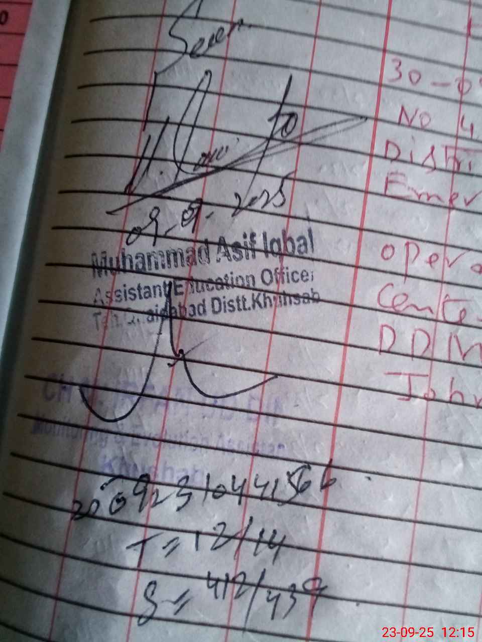 | Name: HA**** SA**** Designation: (School Headmaster's/Headmistress's) SSE PHY Phone/Cell Number: 03**** |
