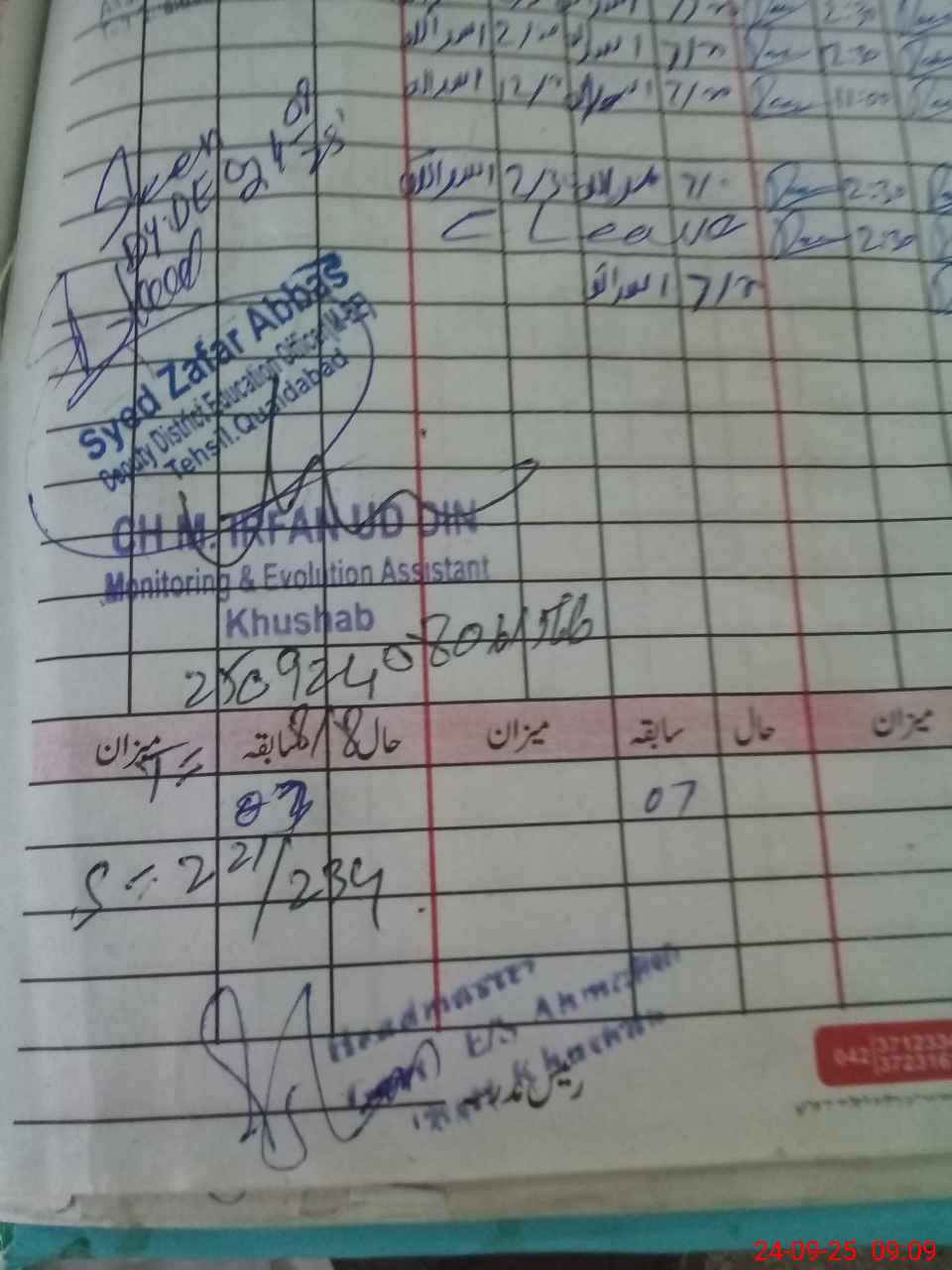 | Name: MU**** Fa**** Kh**** Designation: (School Headmaster's/Headmistress's) SST Phone/Cell Number: 03**** |