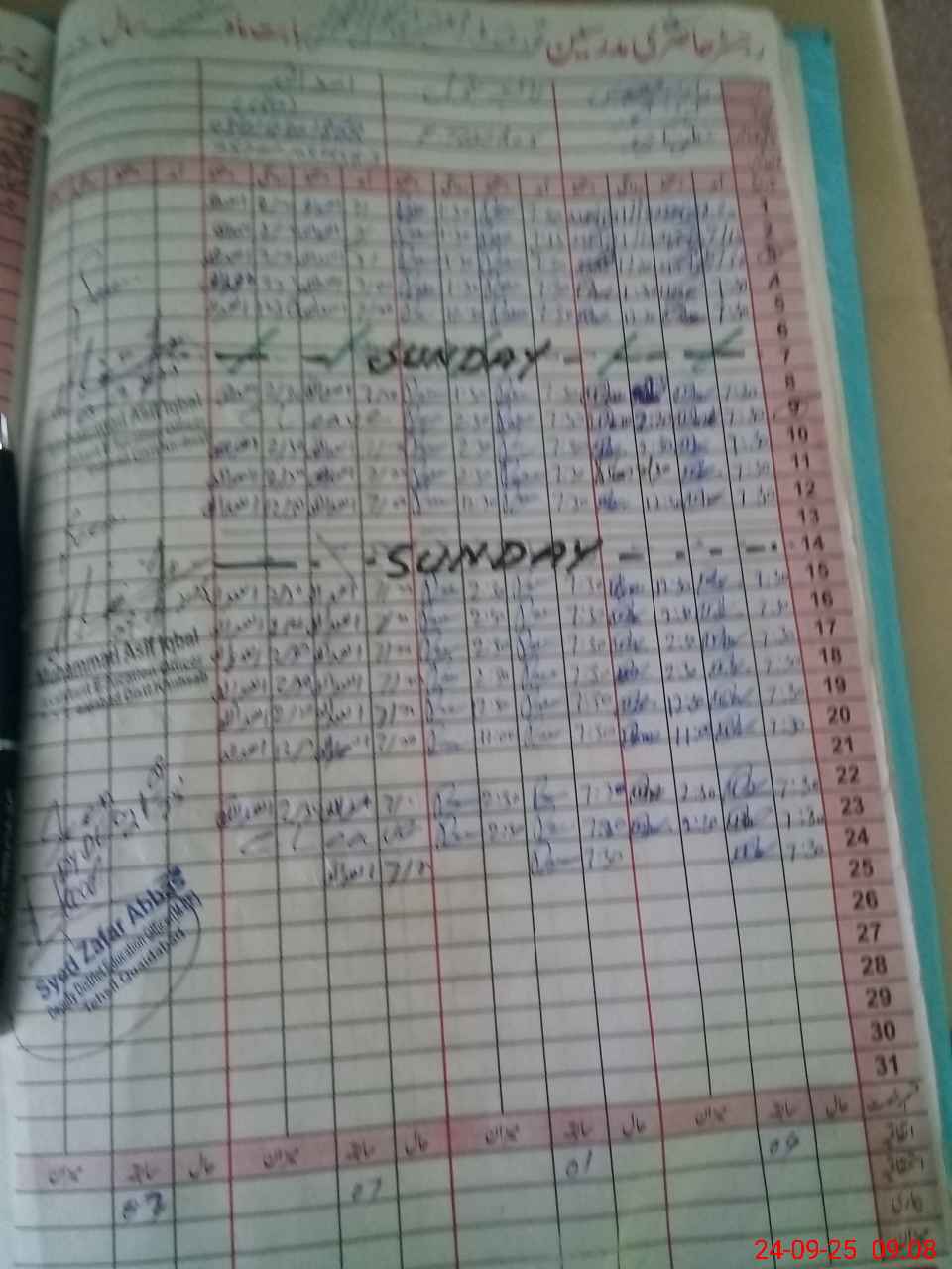 | CNIC | Full Name | Designation | R/C | Absence During Last Calender Month |