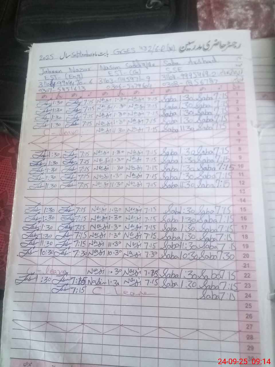 | Name: Sh**** Pe**** Designation: (School Headmaster's/Headmistress's) EST Phone/Cell Number: 03**** |