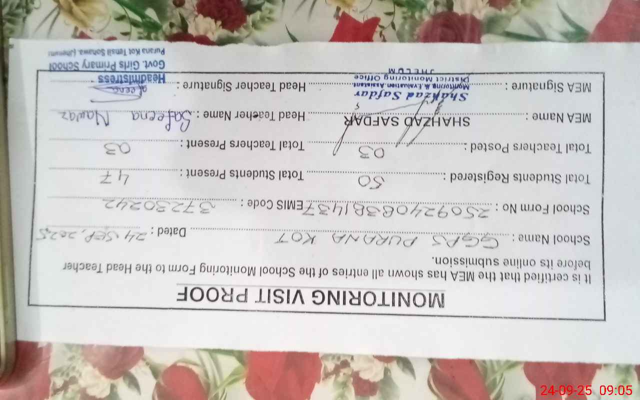 | EMIS Code: 37230242 | Name of School: GGPS PURANA KOT | |||