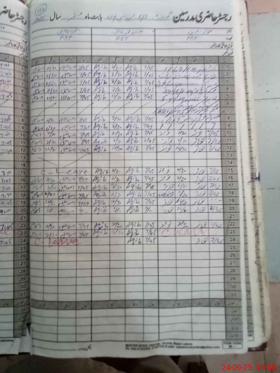 | CNIC | Full Name | Designation | R/C | Absence During Last Calender Month |