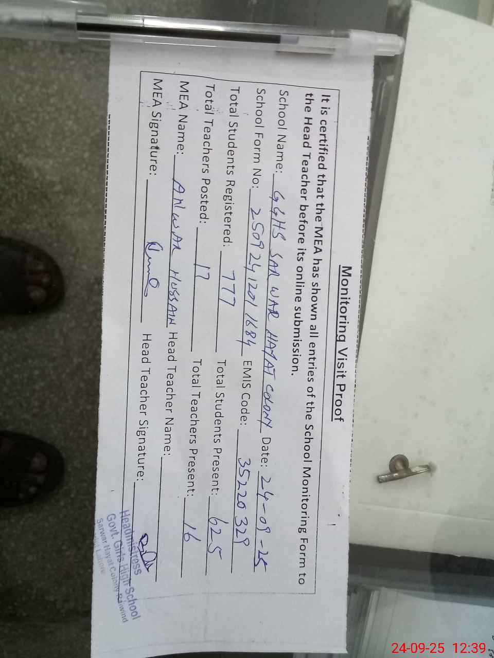 | EMIS Code: 35220327 | Name of School: GGHS SARWAR HAYAT COLONY (Newly upgraded) | |||