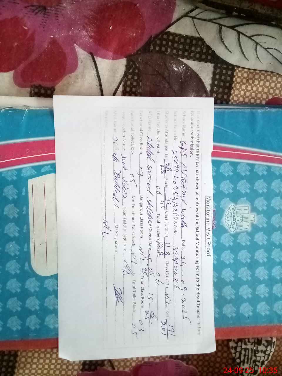 | EMIS Code: 32410086 | Name of School: GPS MAQAMI WALA | |||