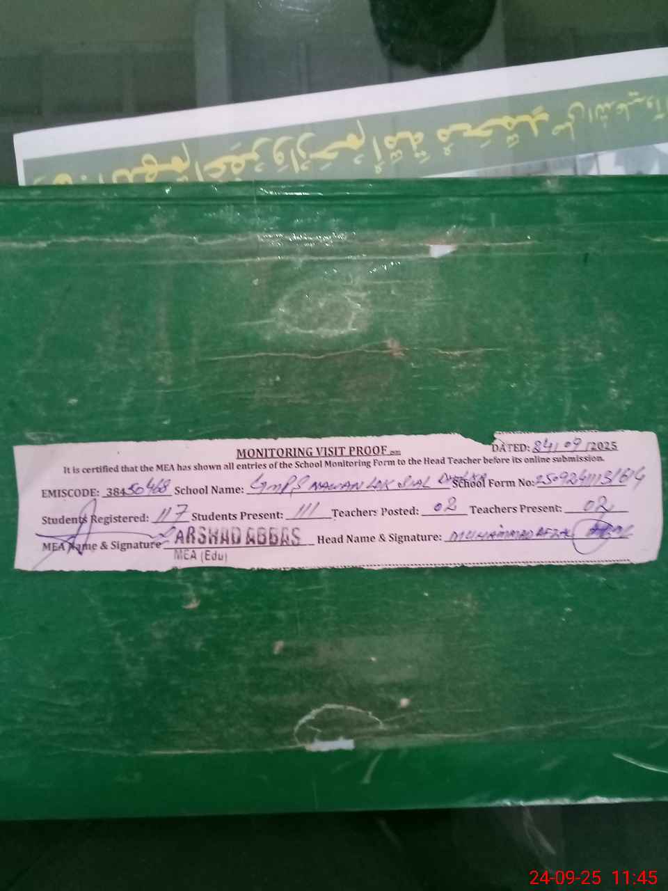 | EMIS Code: 38450468 | Name of School: GMPS NAWAN LOK SIAL DHOLKA | |||