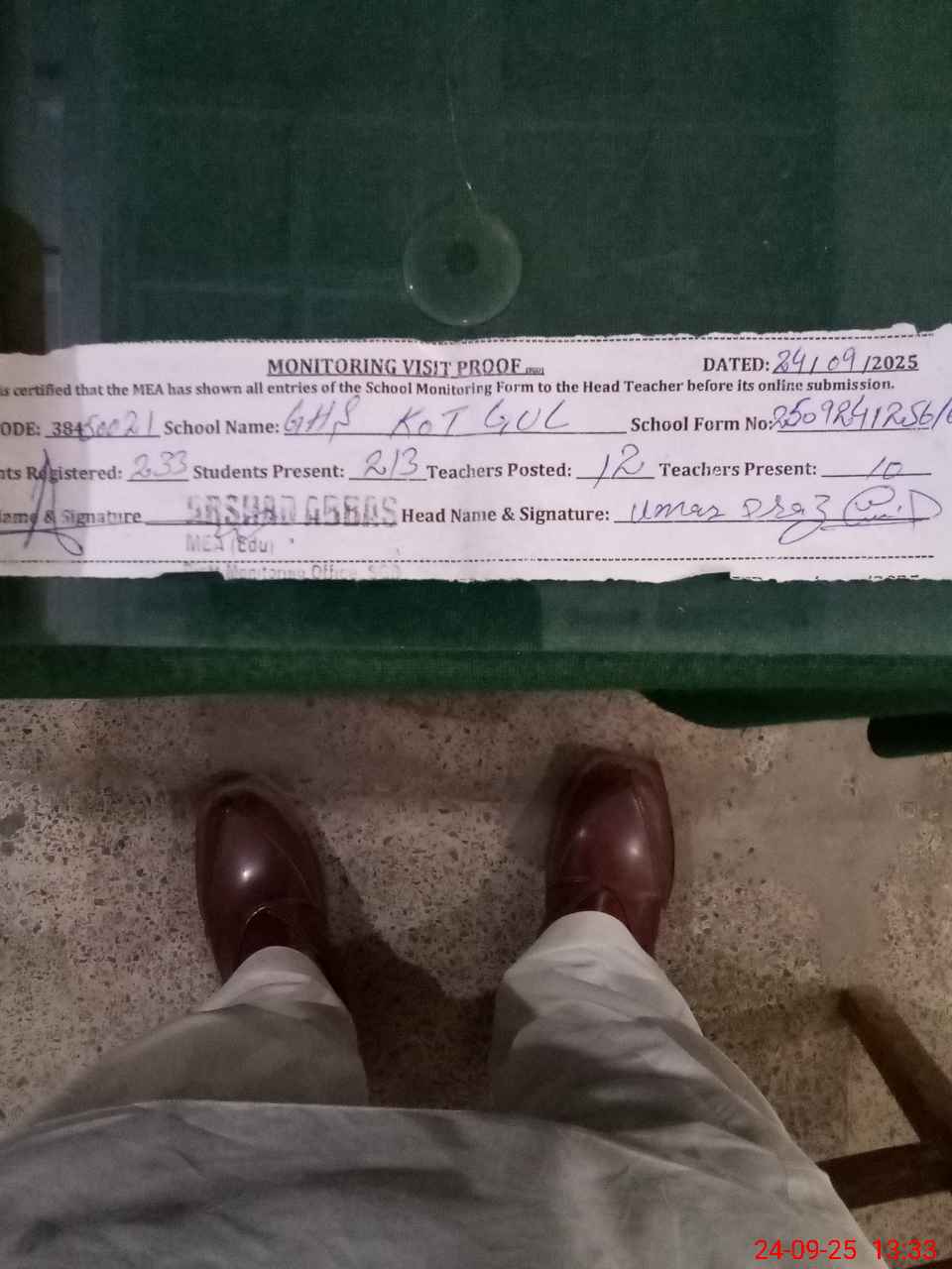 | Attendance Register | Head Teacher | MEA with School | Visit Proof |