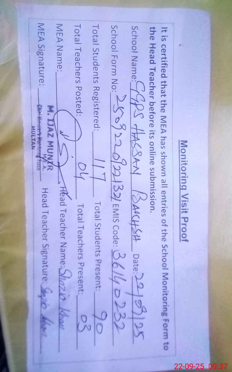| EMIS Code: 36140232 | Name of School: GGPS BASTI HASSAN BAKHSH WALA | |||