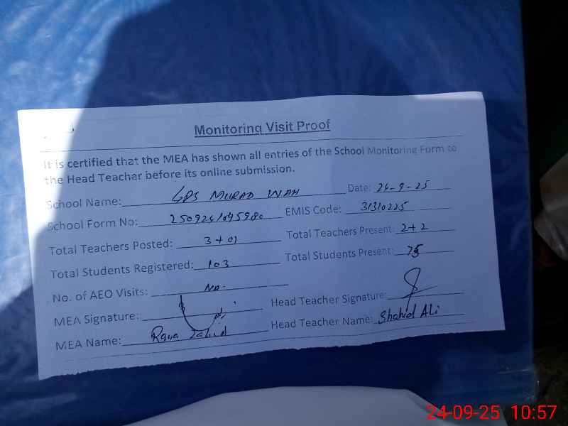 | EMIS Code: 31310225 | Name of School: GPS MURAD WAH PO KOTLA PATHAN | |||