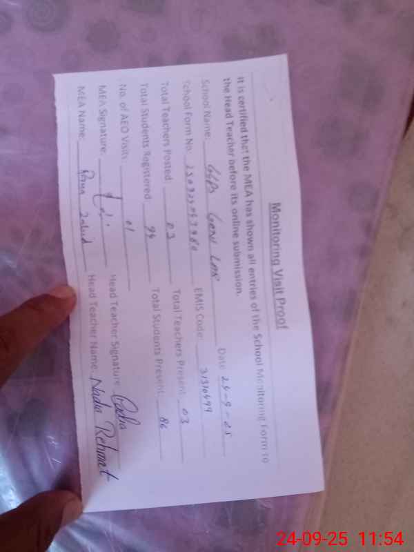 | Attendance Register | Head Teacher | MEA with School | Visit Proof |