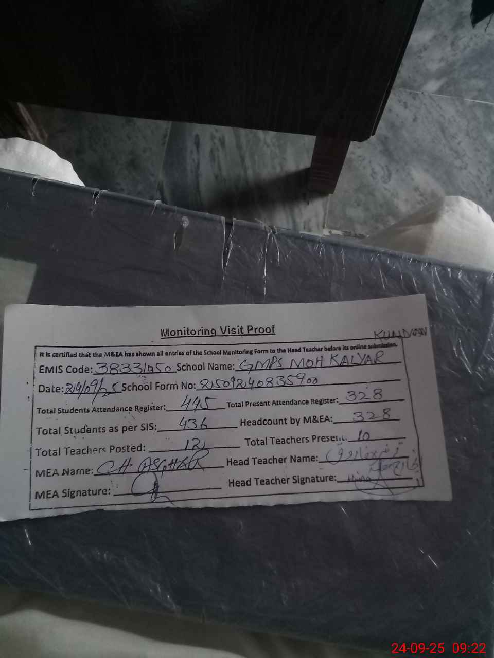 | EMIS Code: 38331050 | Name of School: GMPS MOH KALYAR KUNDIAN | |||