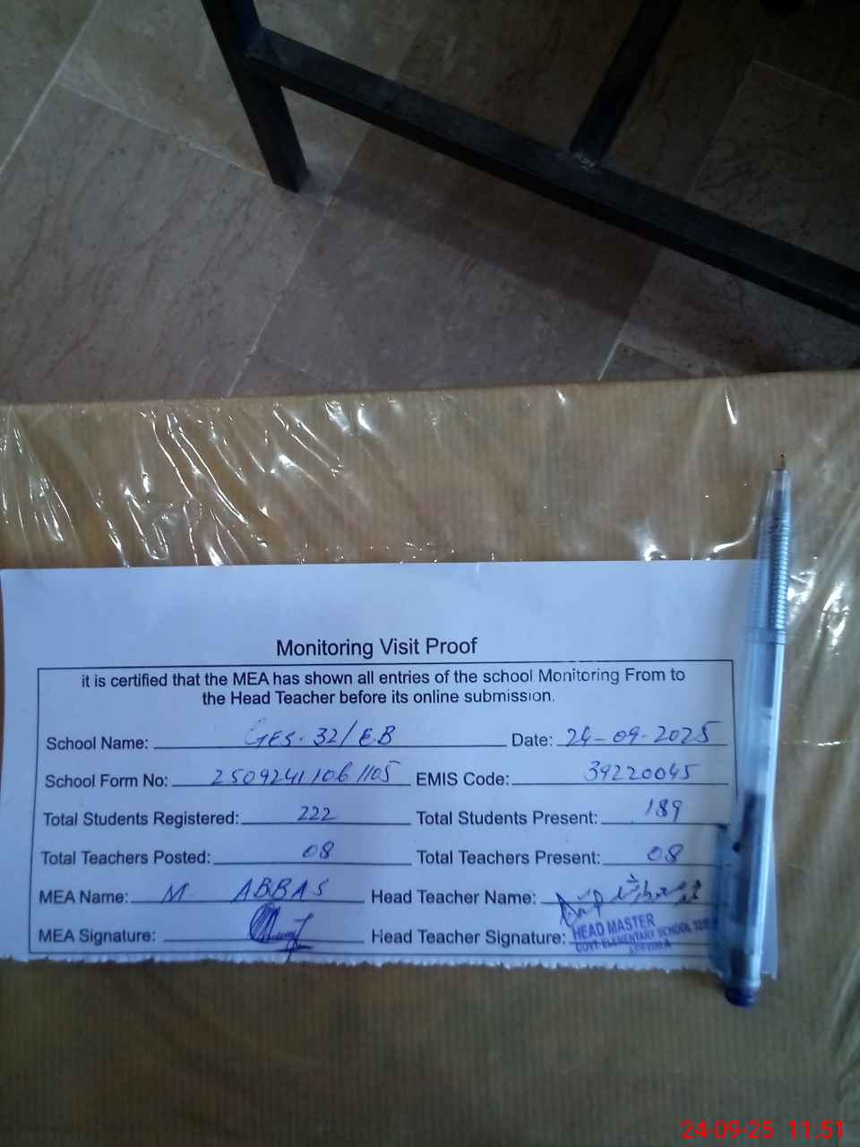 | EMIS Code: 39220045 | Name of School: GES CHAK NO. 32 / EB | |||