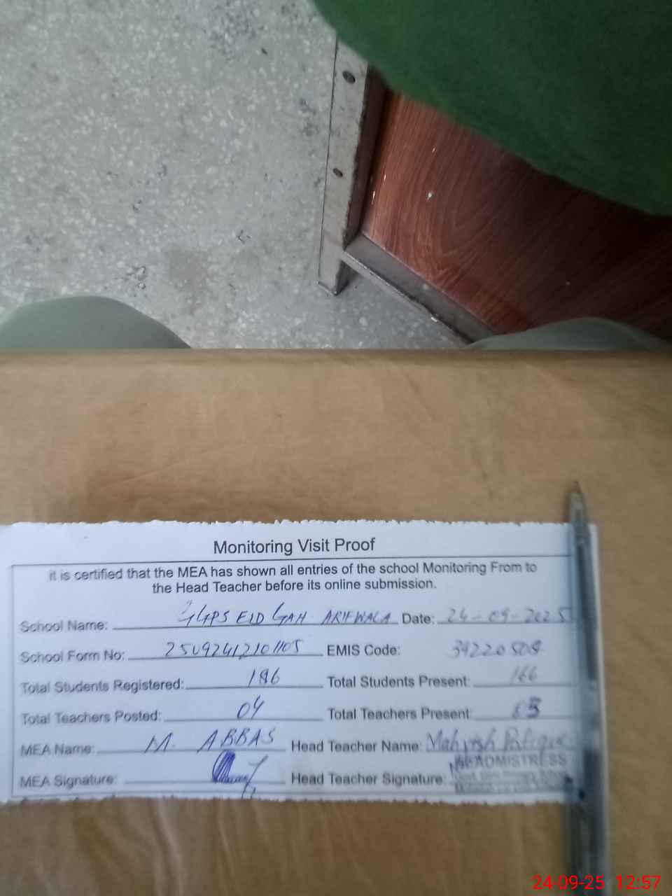 | EMIS Code: 39220508 | Name of School: GGPS EID GAH ARIFWALA | |||