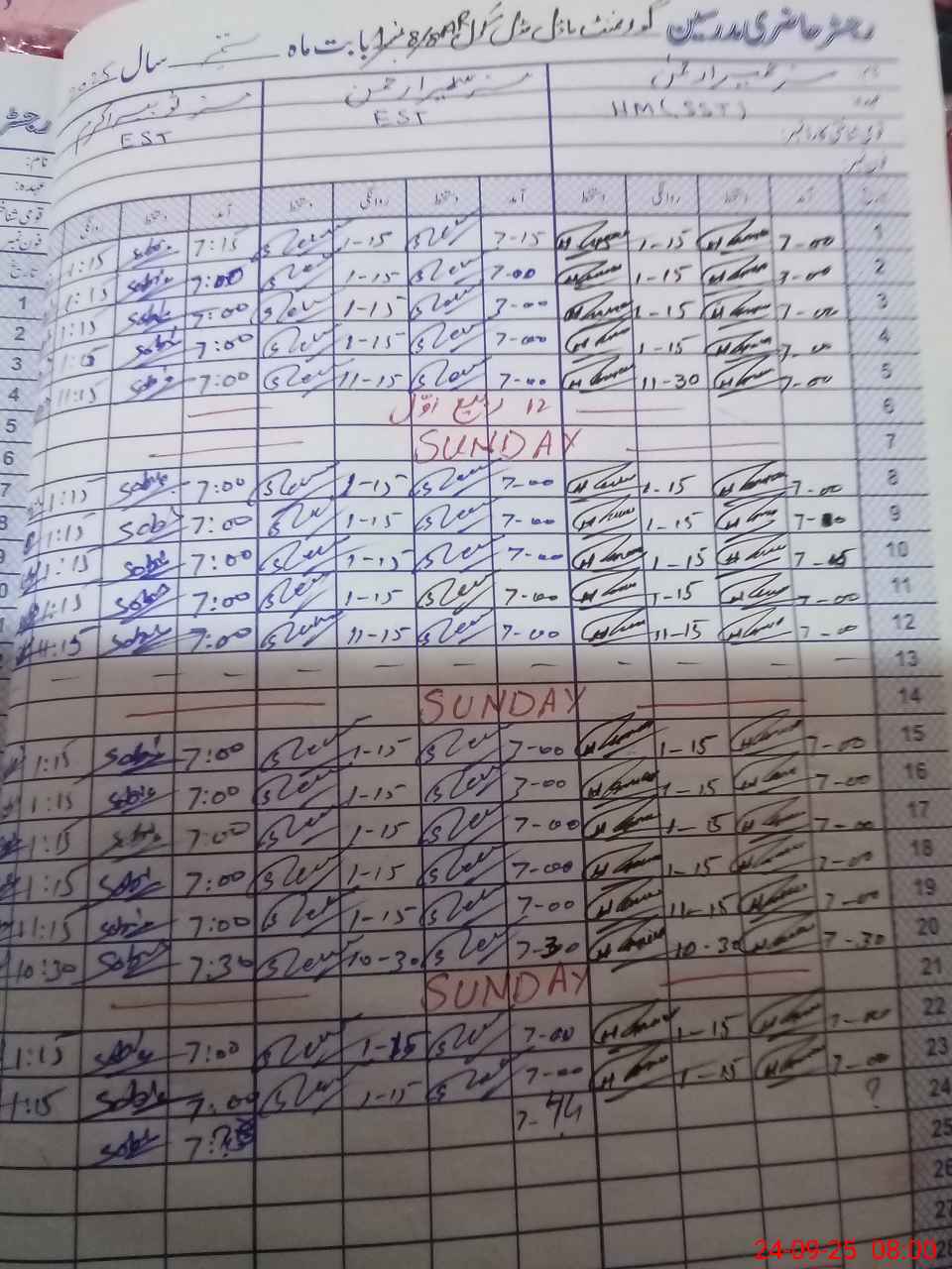 | CNIC | Full Name | Designation | R/C | Absence During Last Calender Month |